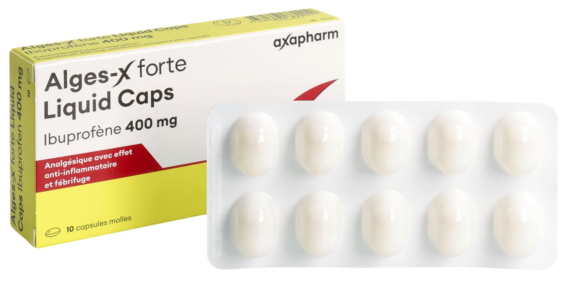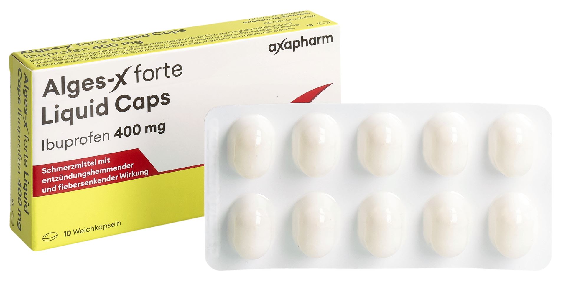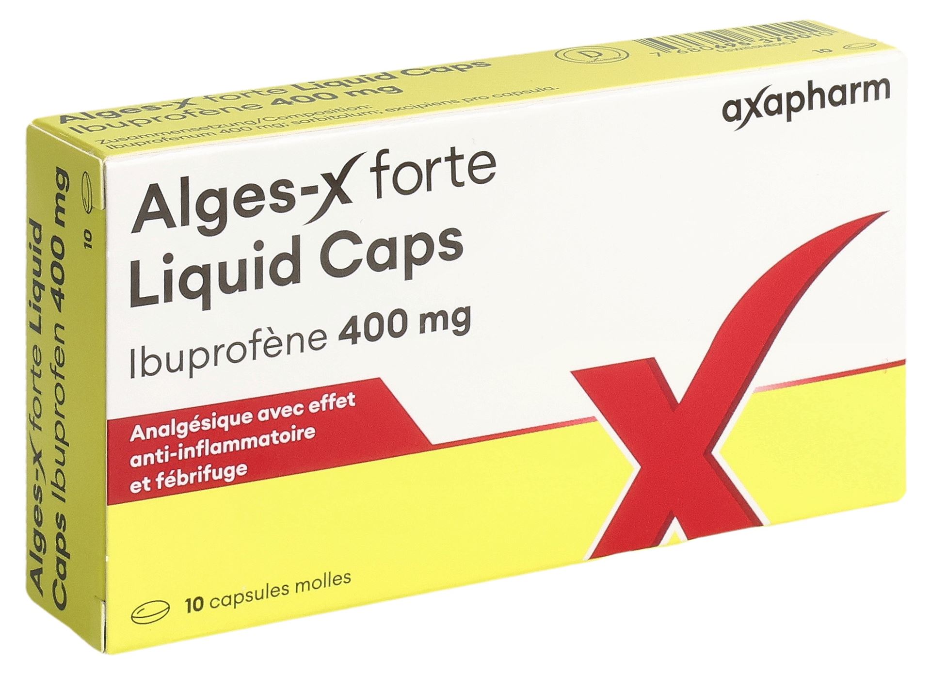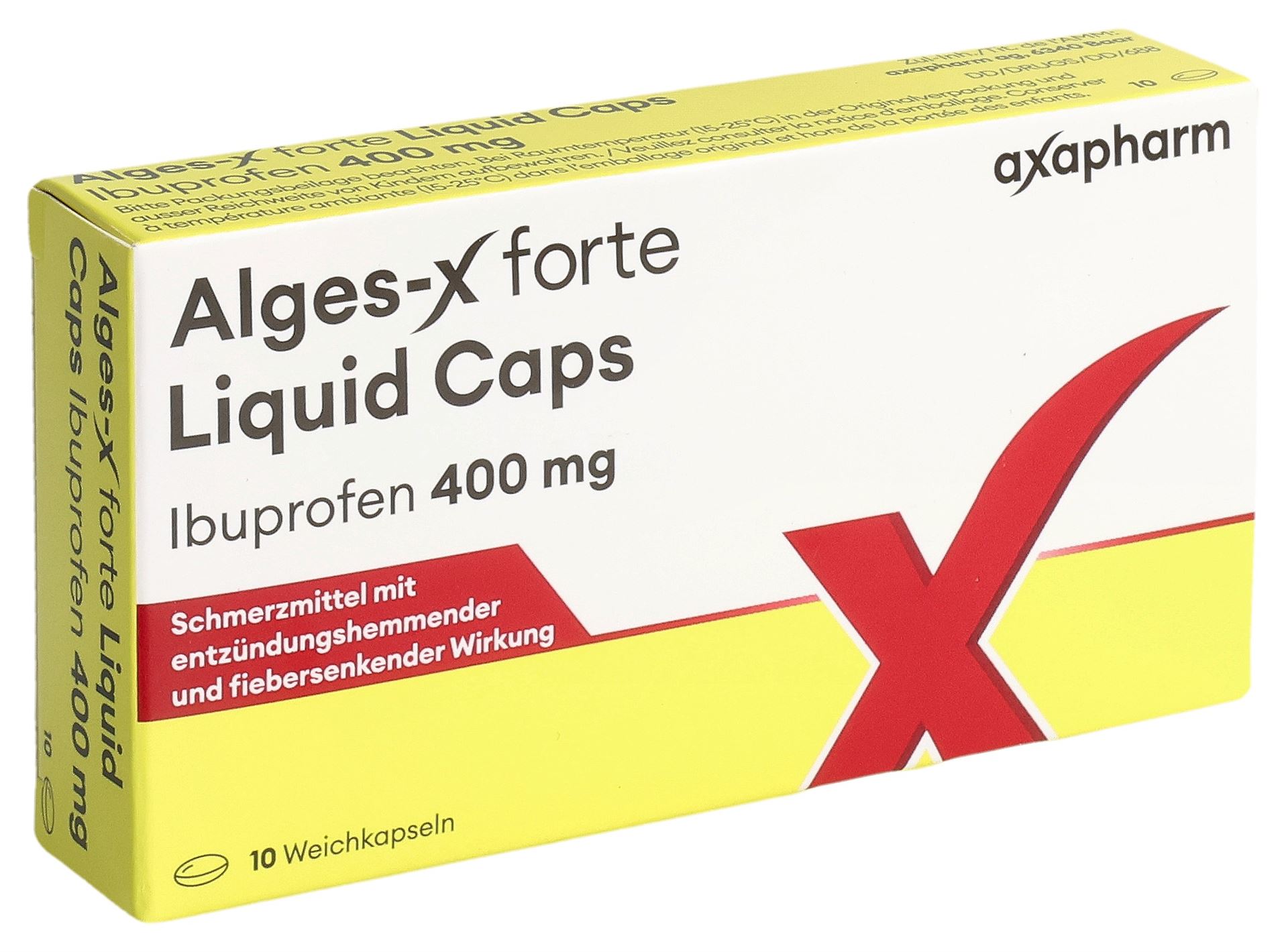 La capsula molle Alges-X forte Liquid Caps contiene il principio attivo ibuprofene. Questo possiede caratteristiche analgesiche, antipiretiche e antinfiammatorie. Alges-X forte Liquid Caps è adatto per il trattamento a breve termine, ossia per una durata massima di 3 giorni consecutivi, per il trattamento di: