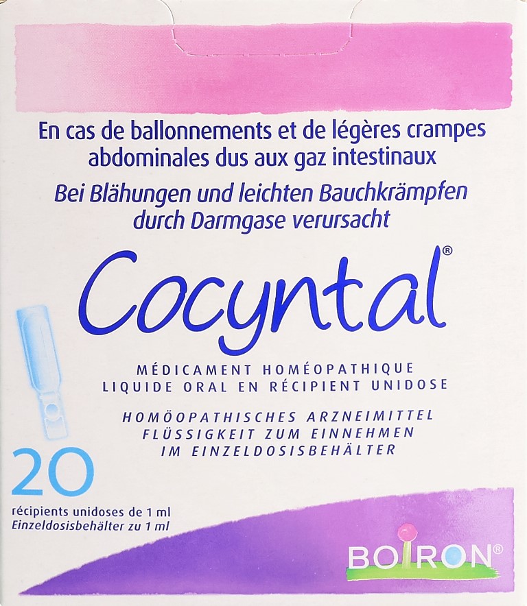 Secondo la concezione che sta alla base dei medicamenti omeopatici Cocyntal può essere usato in caso di gonfiori e lievi crampi addominali dovuti ai gas intestinali.