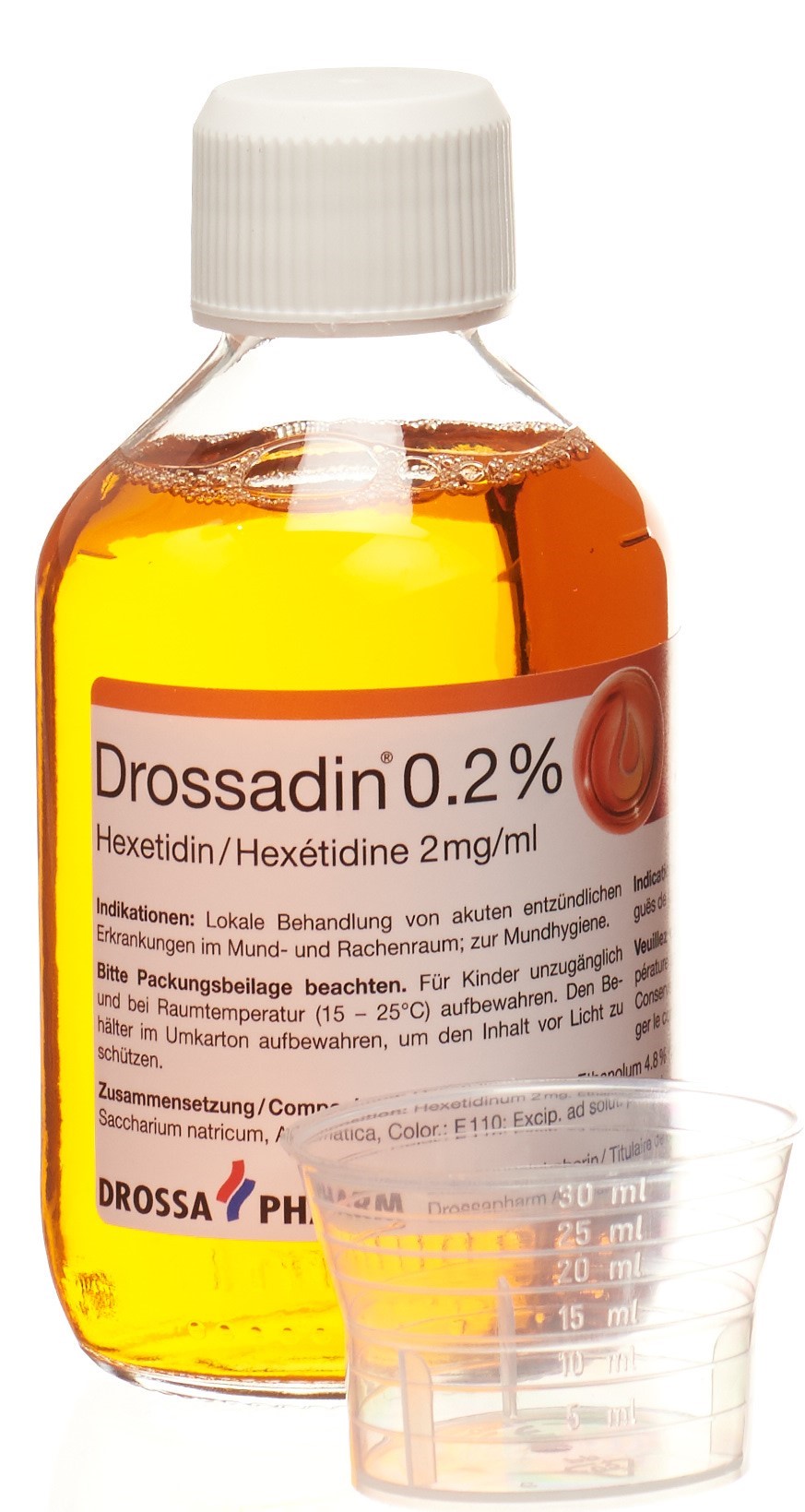 Drossadin viene impiegato nelle malattie infiammatorie acute del cavo orofaringeo e per l'igiene orale in caso di: