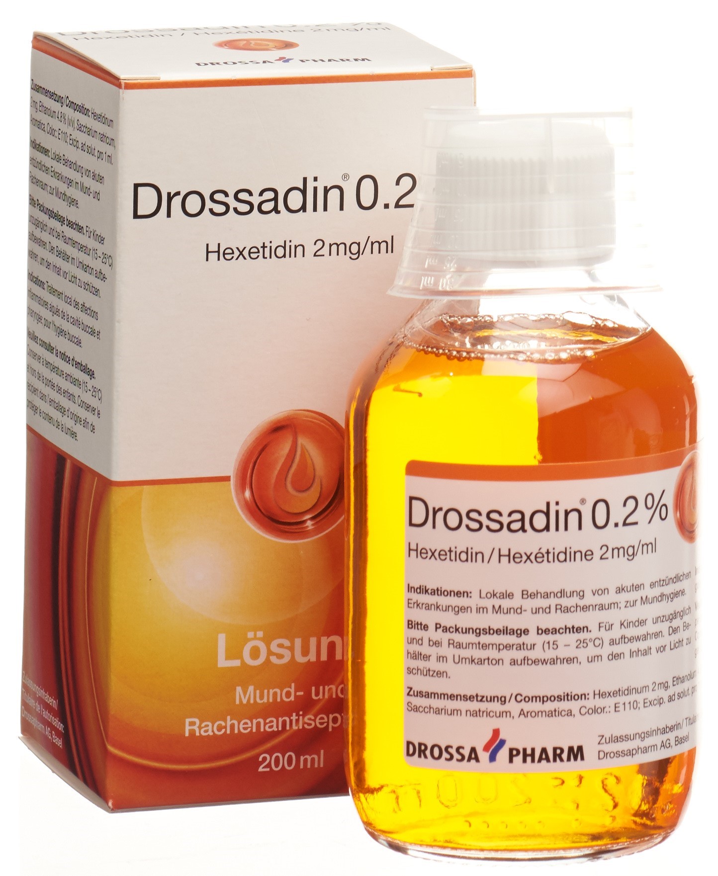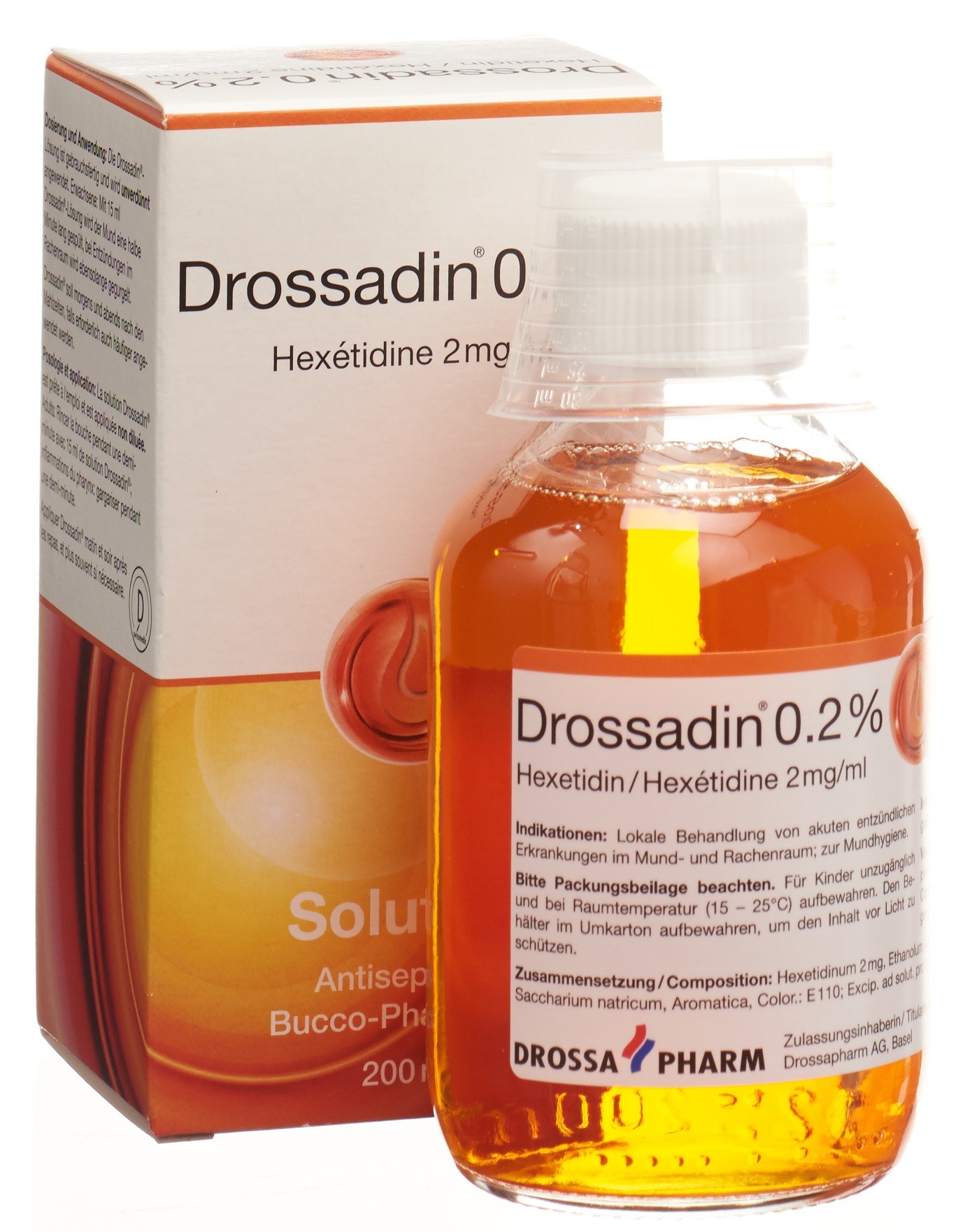 Drossadin è un antisettico orofaringeo e agisce contro batteri e funghi che possono causare infezioni nel cavo orale e nella faringe. Drossadin possiede proprietà emostatiche (antiemorragiche), antidolorifiche e che favoriscono la guarigione ed è inoltre ben tollerato sulle mucose.