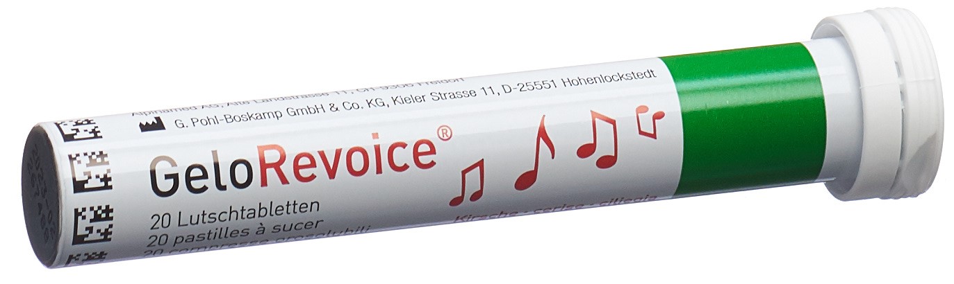Quando vengono succhiate, le compresse per la gola GeloRevoice®, legandosi alla saliva, formano lo speciale idro-depot Revoice ® che contiene componenti gelificanti, come p. es. l’acido ialuronico. L’idro-depot Revoice® aderisce tenacemente alla mucosa formando uno strato protettivo sulle zone irritate. Il leggero effetto effervescente e la speciale composizione con minerali stimolano intensamente la produzione di saliva che è molto importante per una distribuzione uniforme dell’idro-depot Revoice® sulle pareti del cavo orofaringeo. In questo modo le zone irritate hanno la possibilità di rigenerarsi. Disturbi come raucedine, raschio alla gola, tosse secca, secchezza delle mucose e conseguente mal di gola, vengono alleviati.