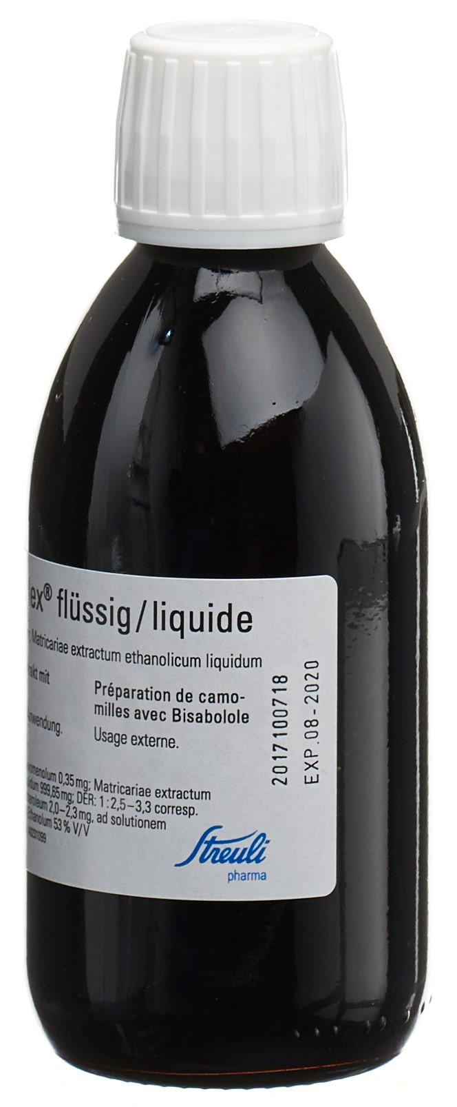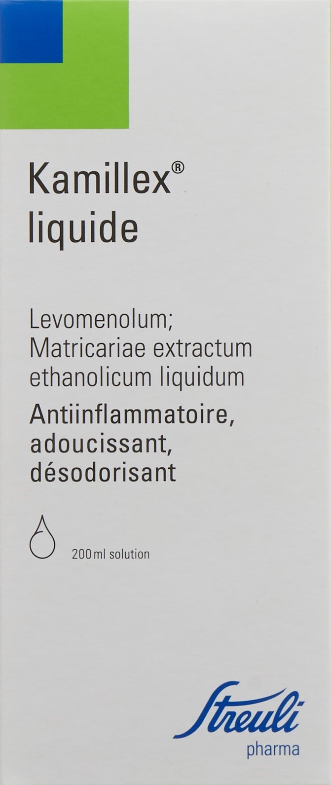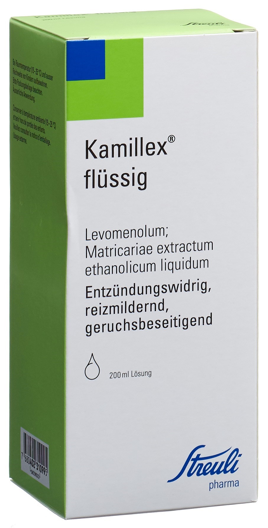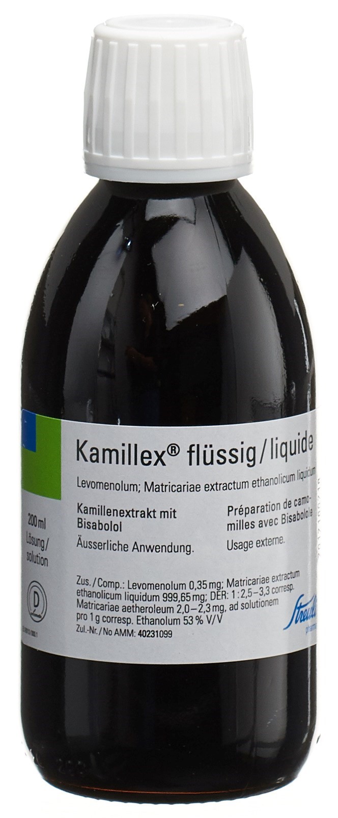 Kamillex, liquido è un estratto alcolico standardizzato di fiori di camomilla con l’aggiunta di bisabololo, un componente della camomilla. Kamillex, liquido è un medicamento antinfiammatorio, analgesico, antipruriginoso e leggermente disinfettante con proprietà lenitive e deodoranti.