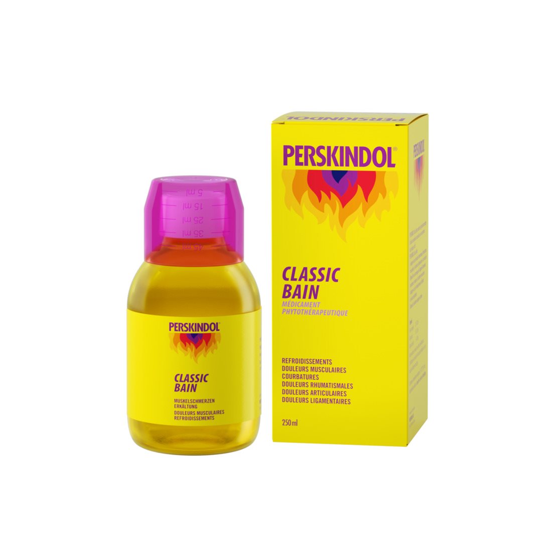 PERSKINDOL Classic Bagno è un prodotto medico per il bagno. Il bagno stimola l’irrorazione della pelle, rinvigorendo le sue funzioni naturali. Inoltre, gli oli essenziali rilassano i muscoli e, inalati, svolgono un’azione calmante sul naso e sui bronchi.
