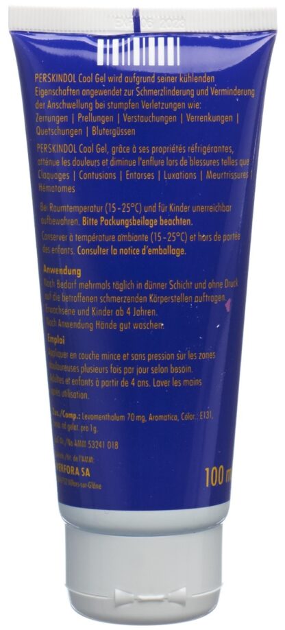 PERSKINDOL Cool Gel rinfrescante e Spray rinfrescante sono stati sviluppati come efficace terapia con il freddo per i traumatismi sportivi. Il gel e il spray contengono levomentolo, una sostanza ricavata dall’olio essenziale di menta piperita che calma il dolore e aiuta a ridurre il gonfiore in caso di contusioni.