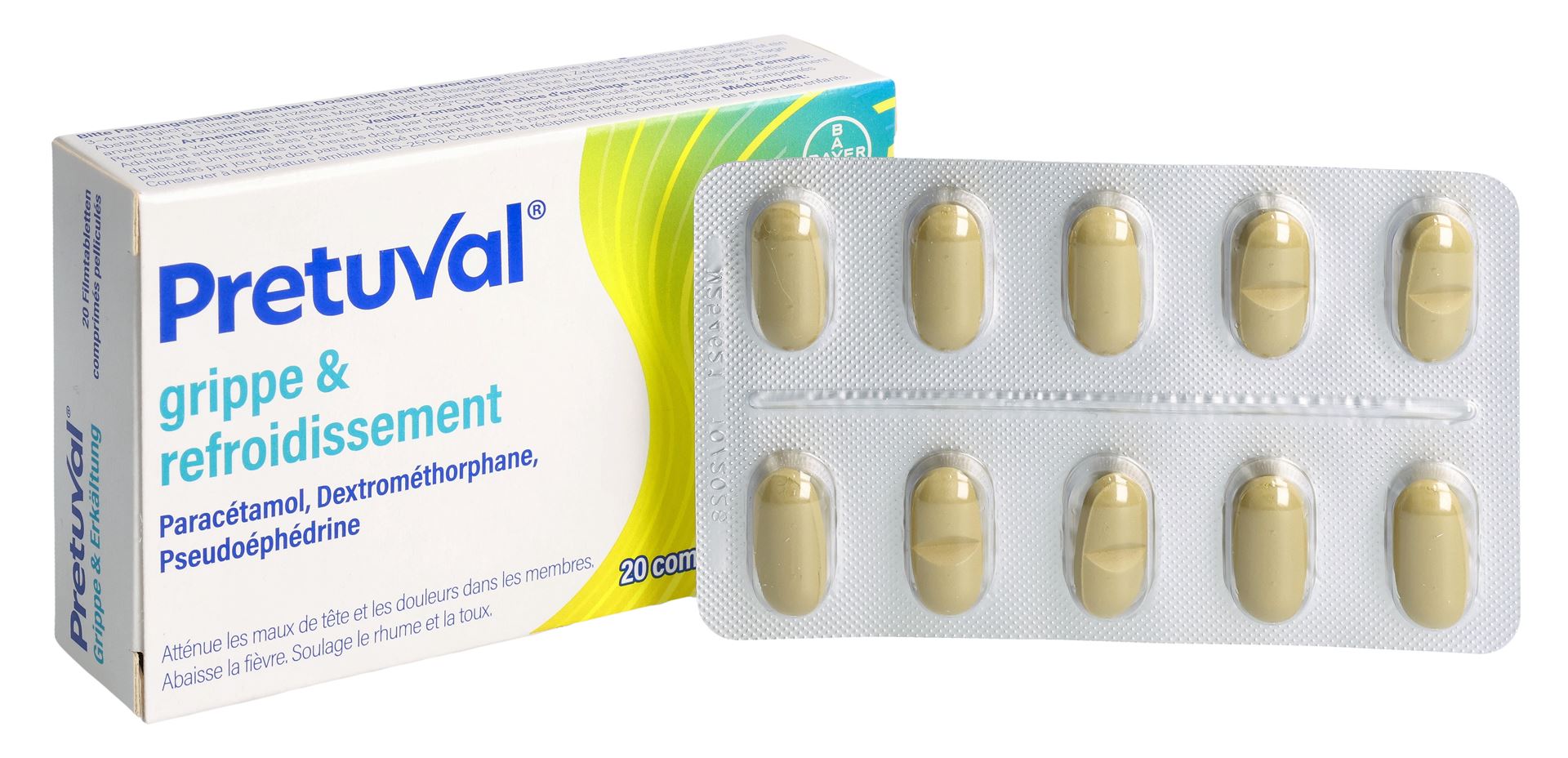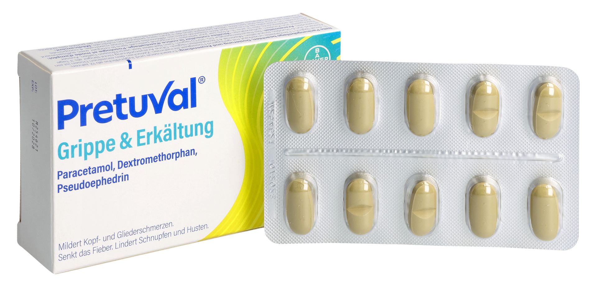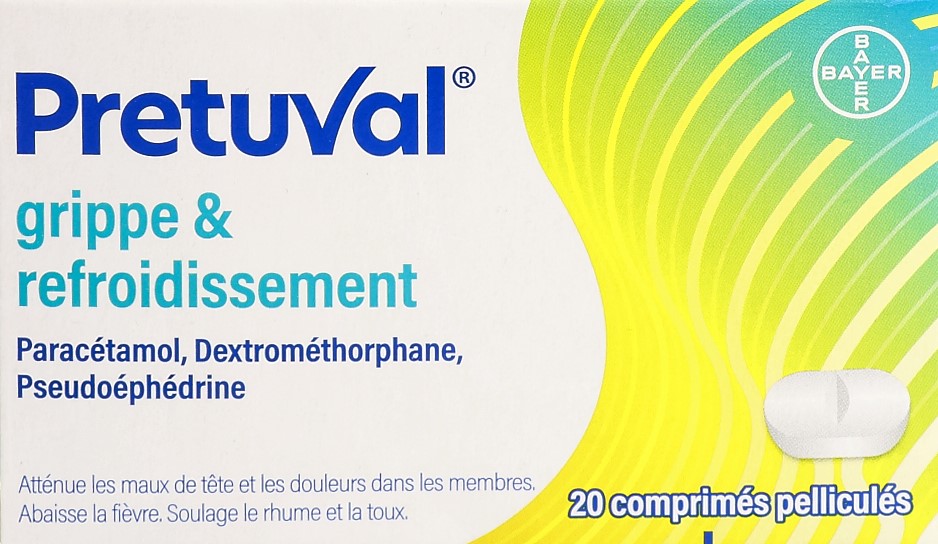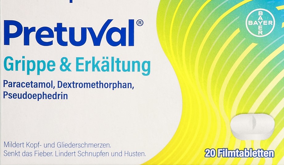Pretuval influenza e raffreddore è un preparato che allevia i sintomi dell'influenza e del raffreddamento con i principi attivi paracetamolo, destrometorfano e pseudoefedrina.