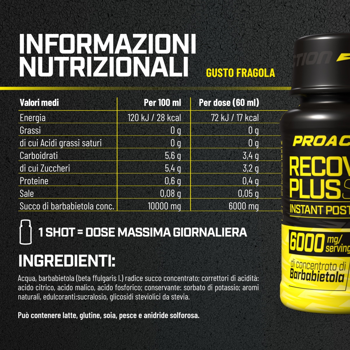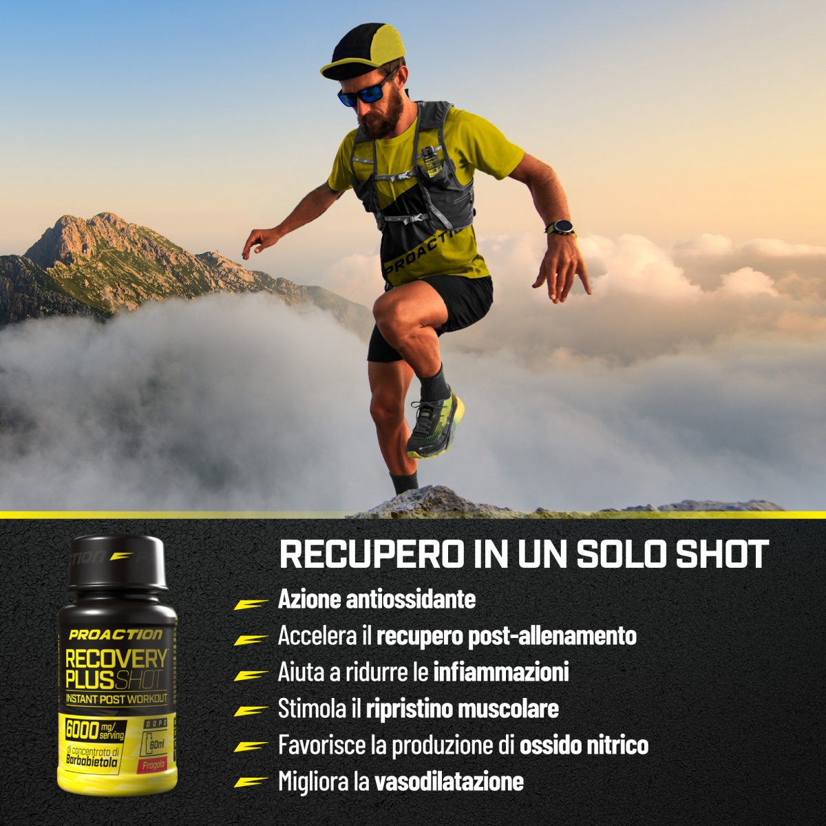 Assumere Recovery Plus Shot dopo l’attività fisica è particolarmente vantaggioso, poiché stimola il ripristino muscolare e aiuta a ridurre le infiammazioni causate da allenamenti ad alta intensità.
