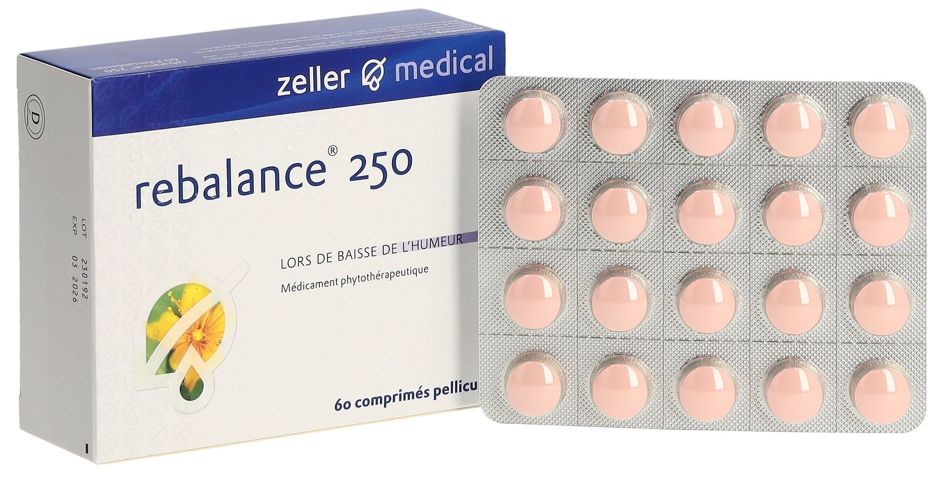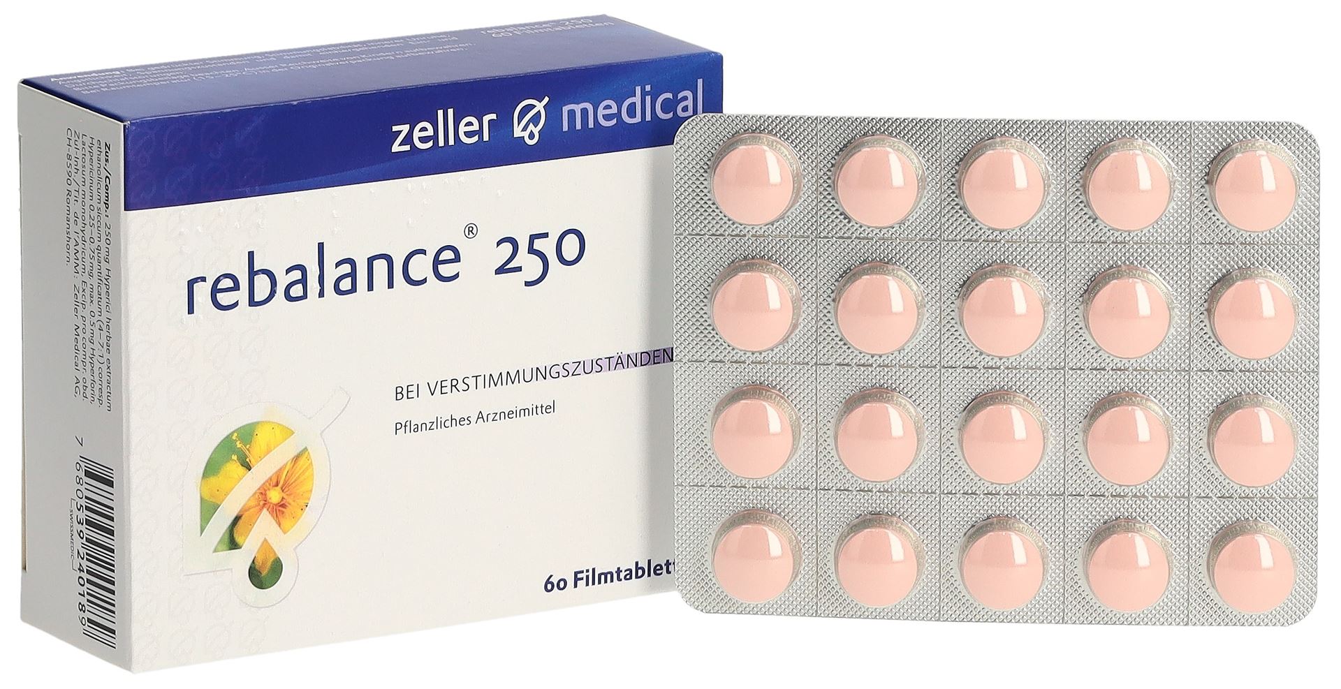 Rebalance 250 è un medicamento fitoterapeutico a base di erba di S. Giovanni. Rebalance 250 contiene un estratto secco quantificato dell’iperico (Hypericum perforatum L.).